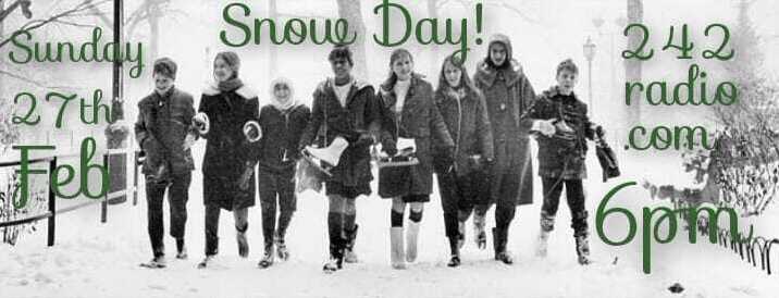 This Sunday at 6pm on 242 Radio it’s a Snow Day Special! All the best glam ski, apple cider, wet bum whilst ice skating and burst boiler stories and tracks! Hot chocolate and marshmallows by the log fire anyone…??